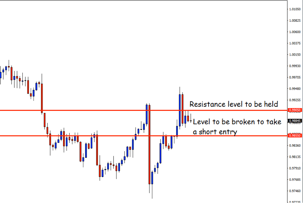 After making a number of lower lows, the price went up once. However, it came down even with more pressure. It went up to 0.99500 again, where it produced an H4 reversal candle. If the price now makes a breakout at 0.98550, then it would come further down. Then, the price would go back to the breakout level (0.98550) again, and produce an H1 reversal candle, right there. If these happen, then selling the pair would get us some green pips today. Let us have a look at the summary of the trade…