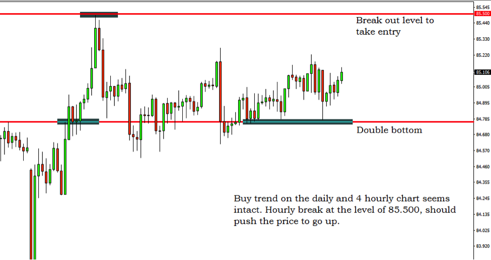 - Stop loss- Should be placed below today’s lower low, which is 84.750.