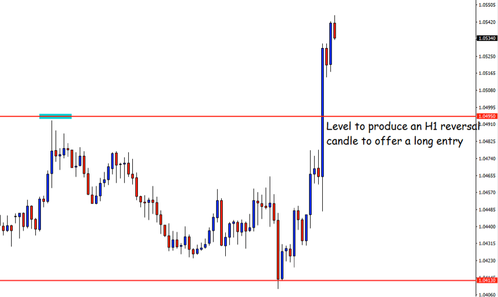 Have a look at the chart. The price seems to find its major support at 1.04130. A massive bull candle breached through the level of 1.04950, which was a strong level of resistance earlier. This means buyers are going to wait for the price to come back at this level to start buying the pair again. If things go as it normally does as far as the price action is concerned, then the price should go up to the level of 1.06900. Let us have a look at the summary of the trade…