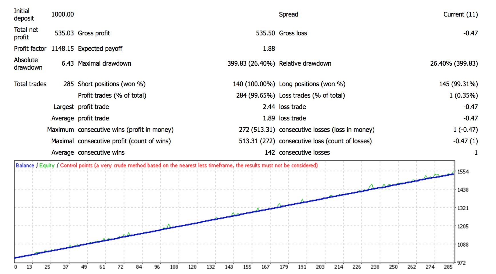 And we are really quite pleased with the testing so far and decided to release it at a ridiculous price. It's really lower than most manual indicators. A powerful automated Expert Advisor like this usually sells for $400 to $700. Since we do not have live results yet, we want to release it for this low price. The backtest is based on a $1000 portfolio and we traded with only 0.01 lots.