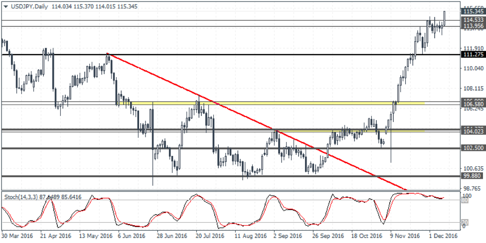 USDJPY Weekly Forex Forecast – 12th to 16th Dec 2016 – Bullish